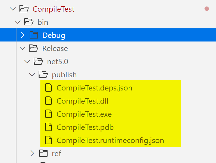 Då kommer filerna i publish-mappen fortfarande vara ganska få, men exe-filen kommer att vara betydligt större. Mappstrukturen blir också lite annorlunda, men det bör inte vara svårt att hitta rätt filer att publicera.